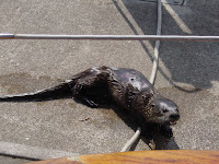 a river otter eating crabs, and another about a flotilla of geese, and another